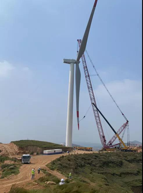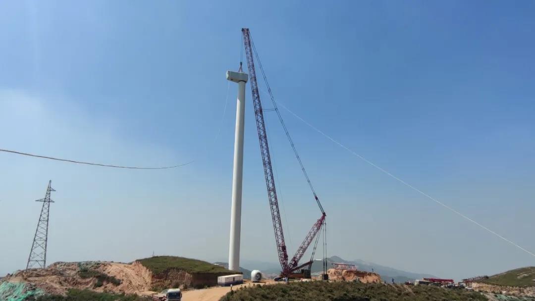 湖北工建安裝公司首臺風(fēng)機(jī)吊裝成功!