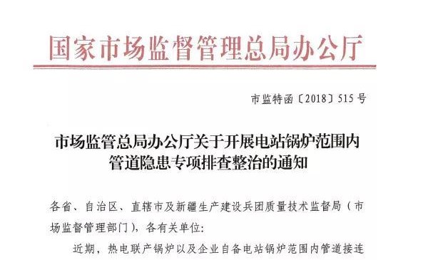 - 市場監(jiān)管總局辦公廳關于開展電站鍋爐范圍內管道隱患專項排查整治的通知