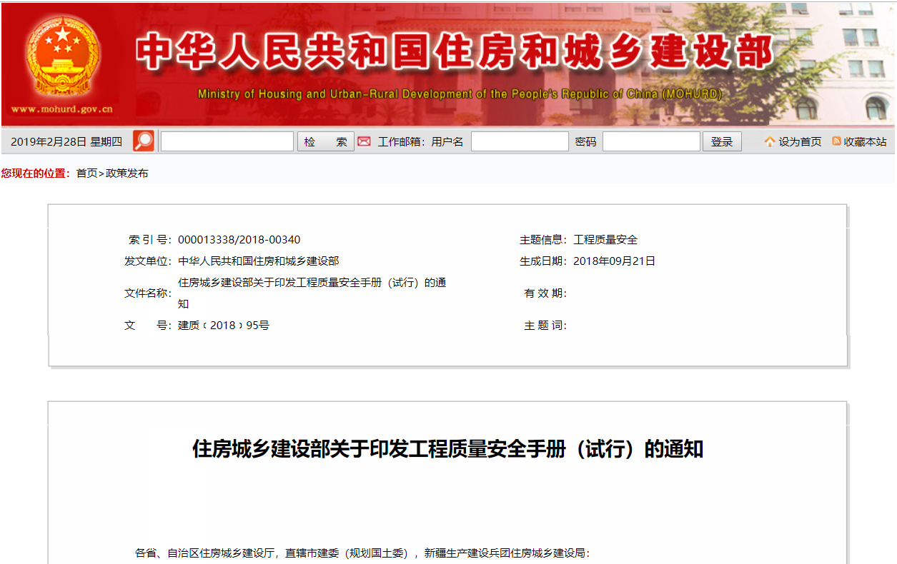 - 住房城鄉(xiāng)建設部關于印發(fā)工程質量安全手冊(試行)的通知