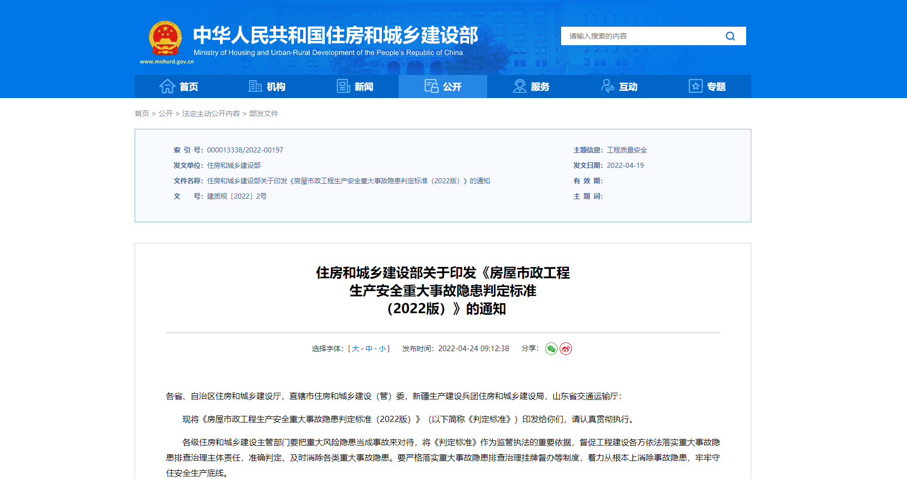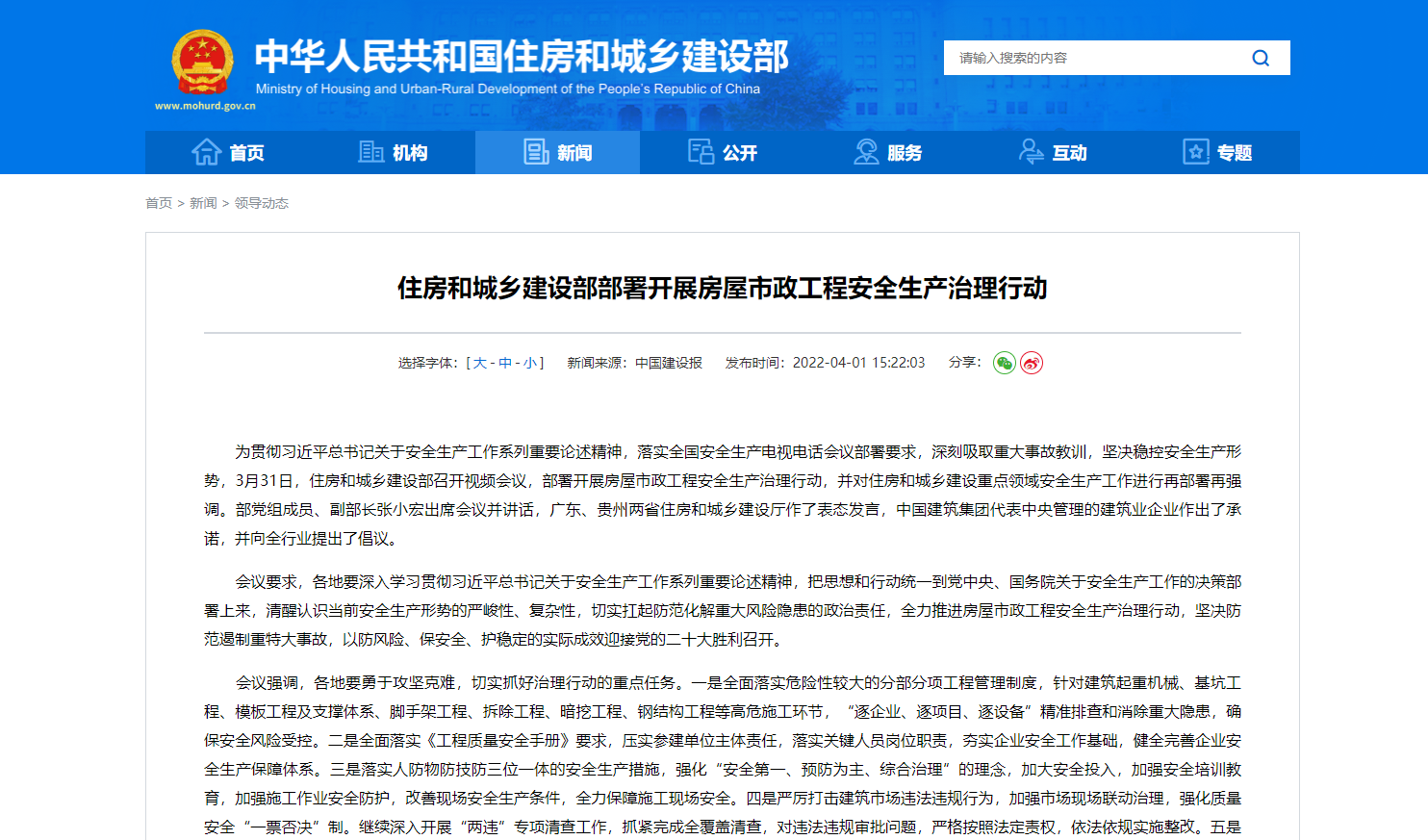 - 住房和城鄉(xiāng)建設部部署開展房屋市政工程安全生產治理行動