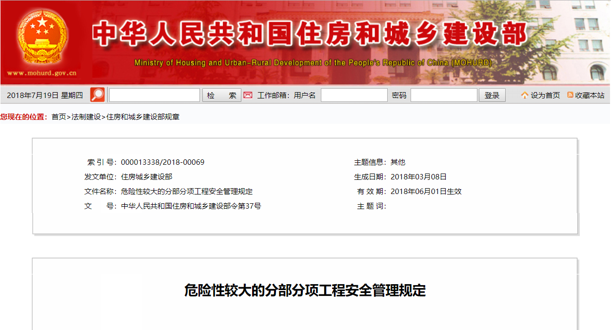 - 《危險性較大的分部分項工程安全管理規(guī)定》已經(jīng)2018年2月12日第37次部常務(wù)會議審議通過,現(xiàn)予發(fā)布,自2018年6月1日起施行。